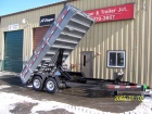 B WISE Low Profile Dump Trailer. 15,000 G.V.W., slide under ramps, scissor hoist, 1 piece floor, hydraulic jack, powder coat finish, 4 D Rings. (Shown with optional alum. wheels) MUST BE ORDERED!! Call for Pricing!!
