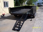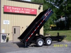 B WISE Low Profile Dump Trailer. 15,000 g.v.w., 1 piece 10 gauge floor, scissor hoist, hydraulic jack, D Rings, slide under ramps, 3 way tailgate, powder coat finish.