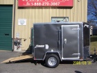 Homesteader Intrepid enclosed trailer. Vee nose, 9'8" floor space, ramp door w/ flap, 32" side door, roof vent, sidewall vents, 2 dome lights, 4 D rings, drop axle, rear stabilizer jacks, stone guard and lockable doors. Radial tires. L.E.D. lights.