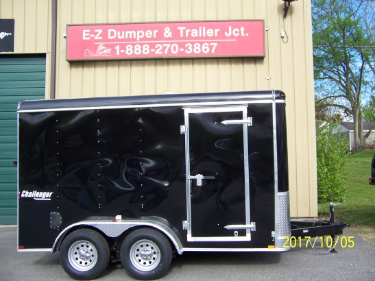 Homesteader Challenger trailer. 6'8" interior height, ramp door w/flap, 32" side door, roof vent and sidewall vents, plywood floor and walls, lockable doors and drop axles, radial tires. L.E.D. lights. CALL FOR PRICING!