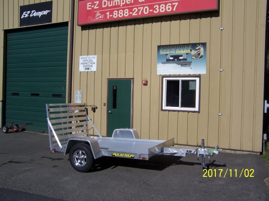 | | 2019 Aluma Mfg. 63"x8', extruded aluminum floor, stake pockets, A frame tongue, swivel jack, L.E.D. lights, torsion axle, 13" radials with alum. rims, 39" gate. (24" Sideboard Kit + $) CALL FOR PRICING!!