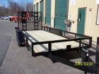 M C T Trailers. 7000 g.v.w., 4 wheel brakes, 205/75R15 LRC radial tires, ez lube hubs, diamond plate fenders, P.T. decking, spare tire brkt., tongue jack. 5' ladder ramp with spring assist.